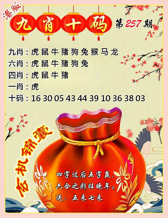 新香港六合彩 第 2025257 期 開獎結果