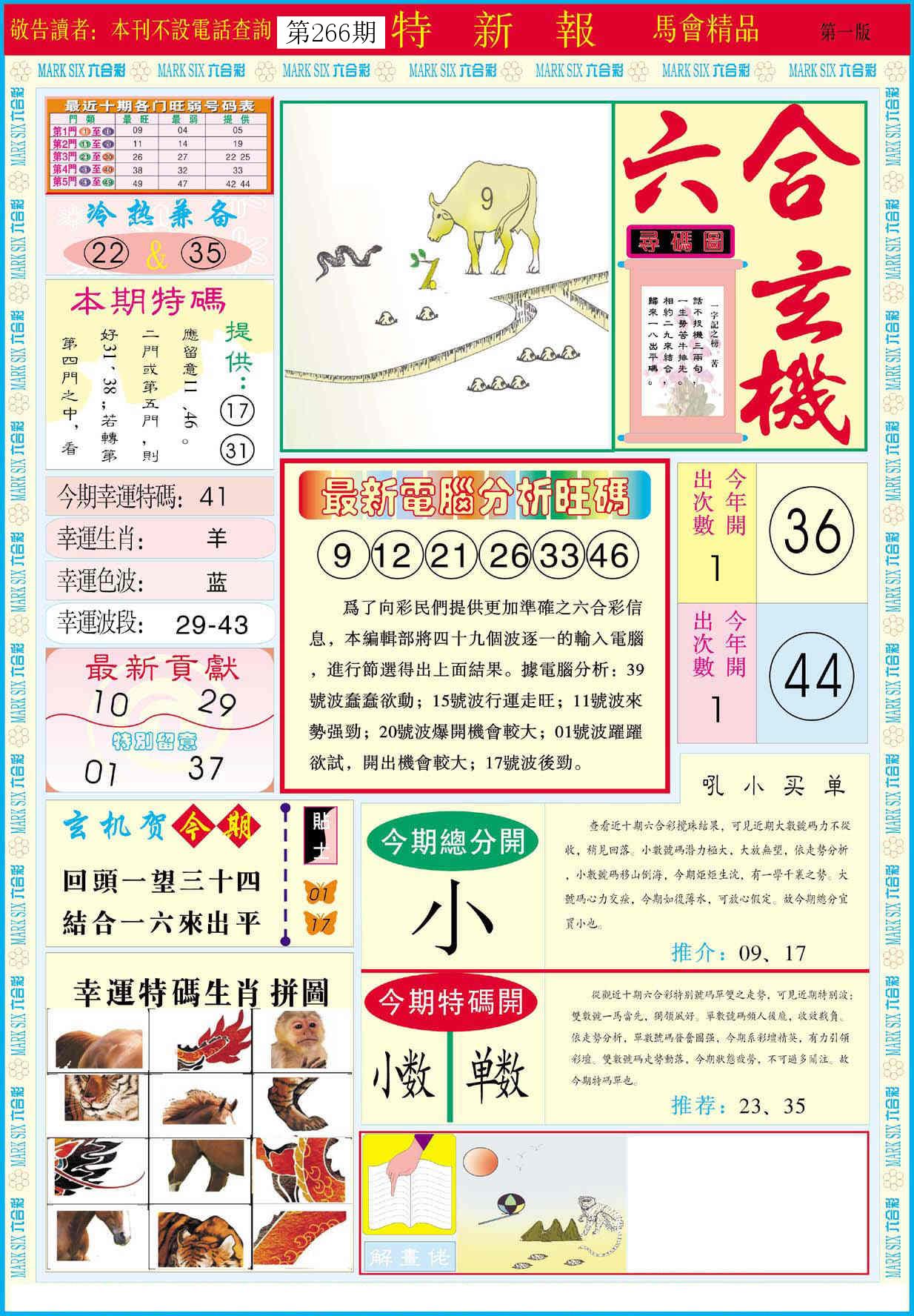 新香港六合彩 第 2025266 期 開獎結果