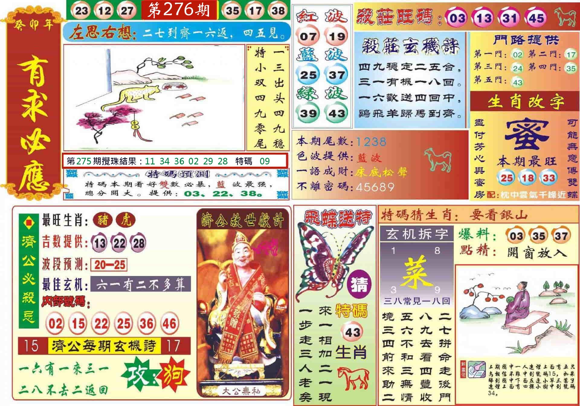 新香港六合彩 第 2025276 期 開獎結果