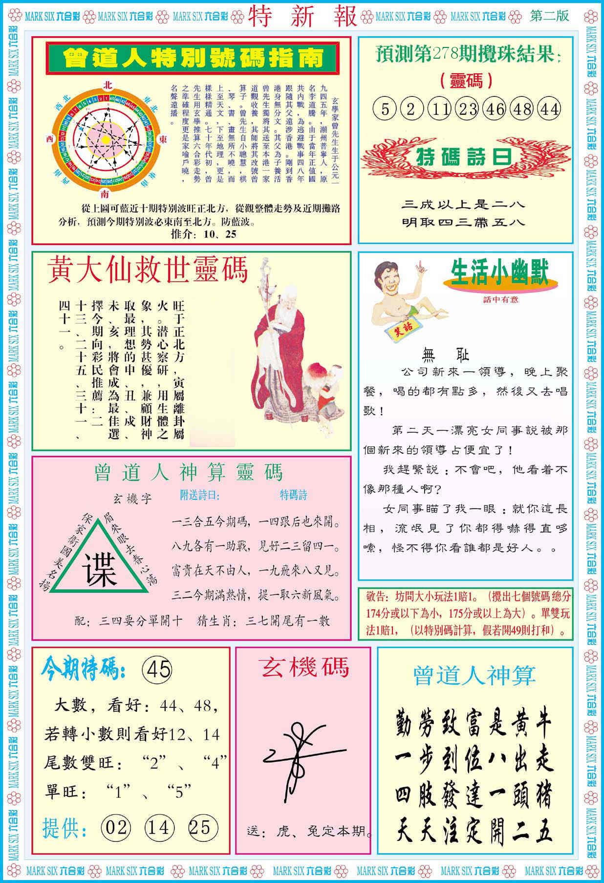 新香港六合彩 第 2025278 期 開獎結果