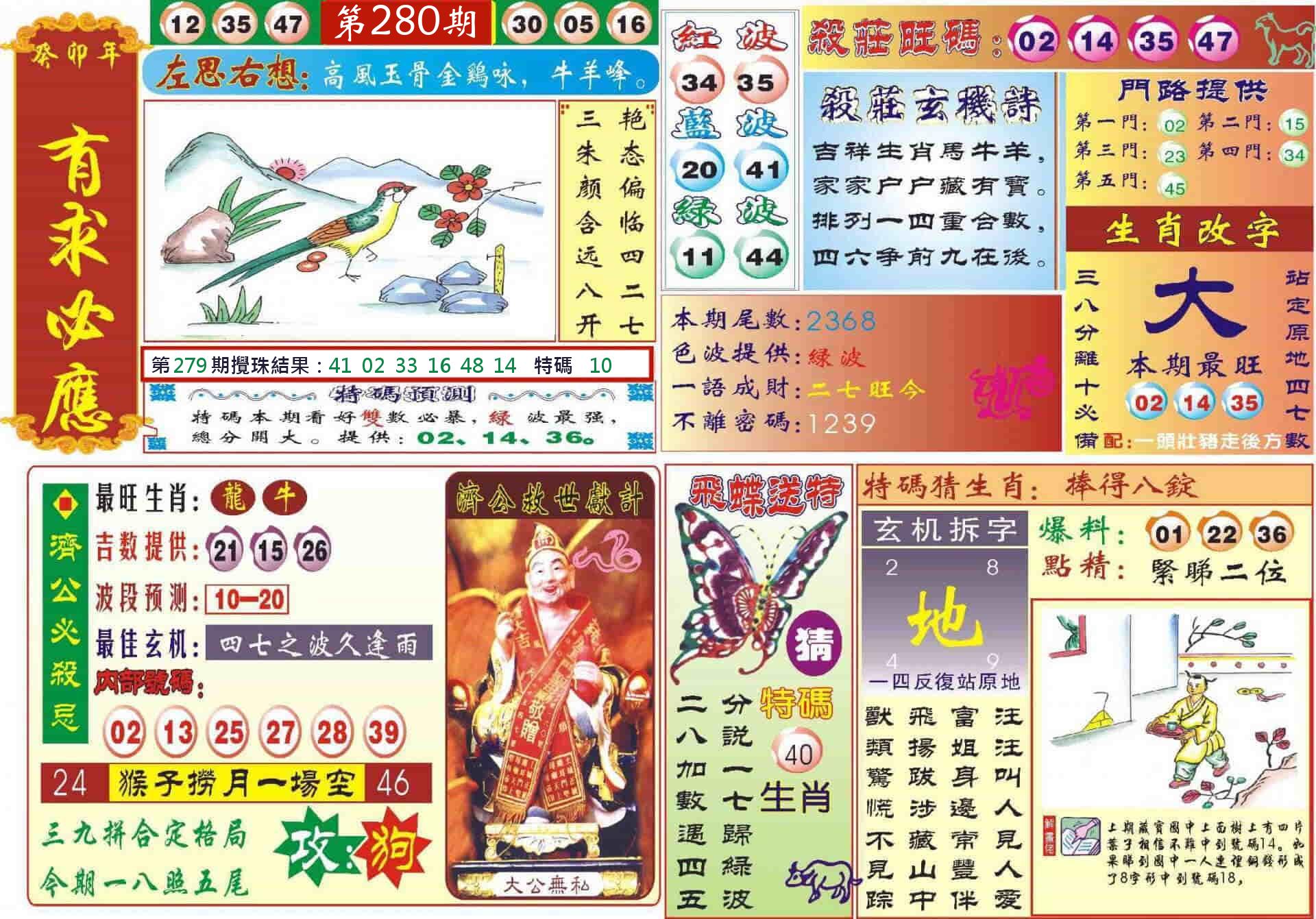 新香港六合彩 第 2025280 期 開獎結果