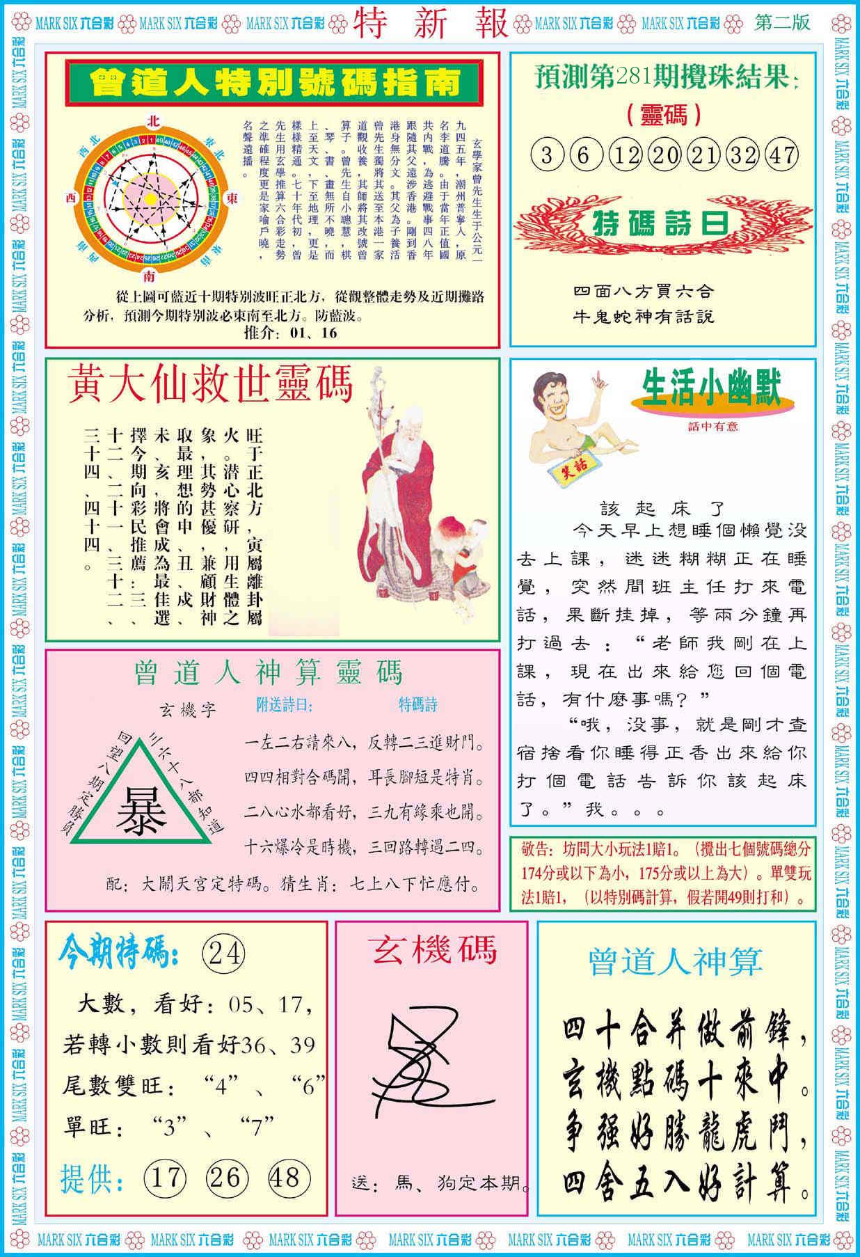 新香港六合彩 第 2025281 期 開獎結果
