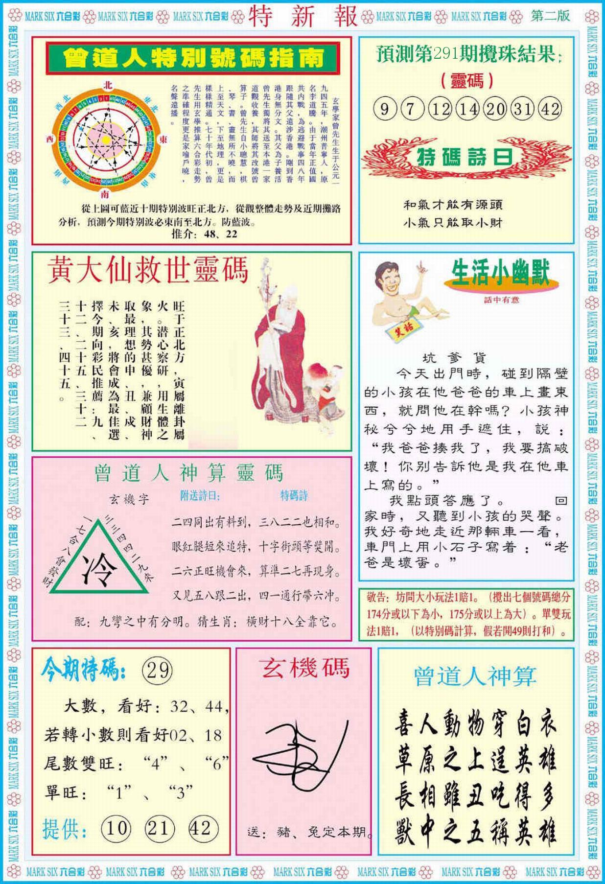 新香港六合彩 第 2025291 期 開獎結果